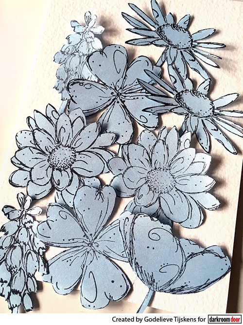 Hi, it is Godelieve here today. Here are two cards I made with the Fine Flowers Vol 2 stamps that I designed for Darkroom Door. It is exciting each time, sending my drawings to Australia and receiving them back as Darkroom Door Rubber Stamps!