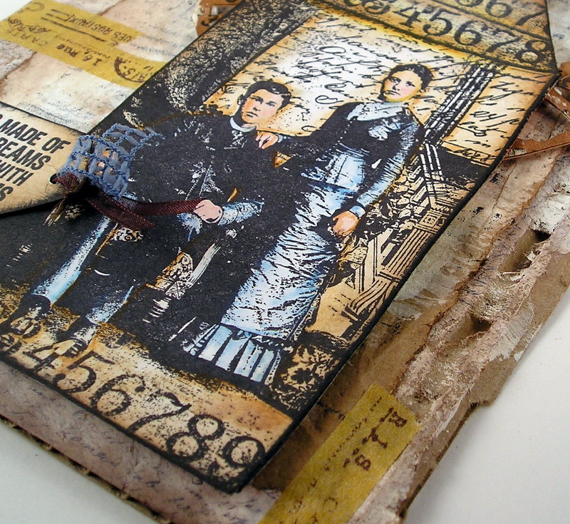Details from Suzz: I love that the new DarkRoom Door collage stamp is called Henry and Harriet! They are posed for their portrait and they look so lovely in their finery.