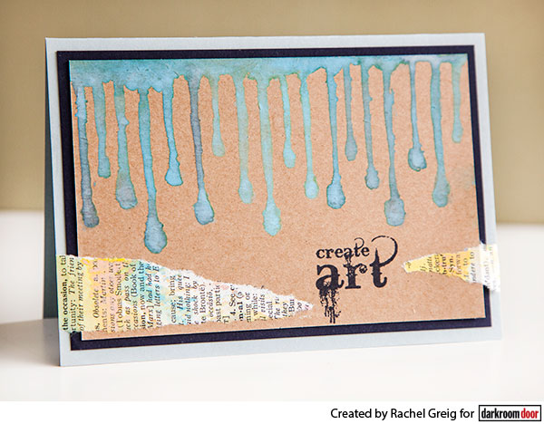1.Stamp the Paint Drips Eclectic Stamp onto kraft card stock using Broken China Distress Oxide ink pad. The Distress Oxide ink reacts a little with kraft cardstock, giving a really cool milky effect.