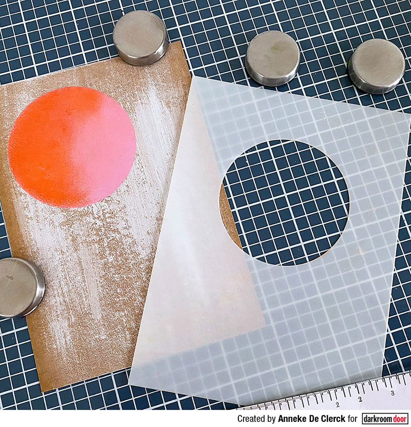 This image below shows you how Anneke used the Circle Set Stencil to create the coloured circle behind the flowers.