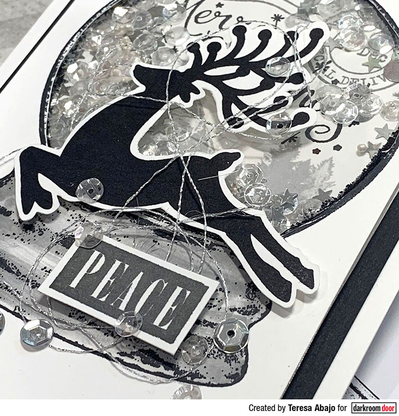 Teresa Abajo created this monochromatic Christmas shaker card using the Snow Globe Frame Stamp with the Christmas Reindeer Stamp Set! Teresa used beautiful sequins inside the shaker which makes it really sparkly which is perfect for Christmas!