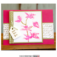 Instructions: Trim stamps using fine tip craft scissors. We recommend using Tim Holtz Tonic Scissors. Peel off white backing paper from the stamp. Place the cling foam side onto a stamping block (sold separately) ready for stamping. Store stamps in the case provided.